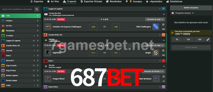 O 687bet oferece uma grande seleção de opções de apostas em e-sports com probabilidades competitivas